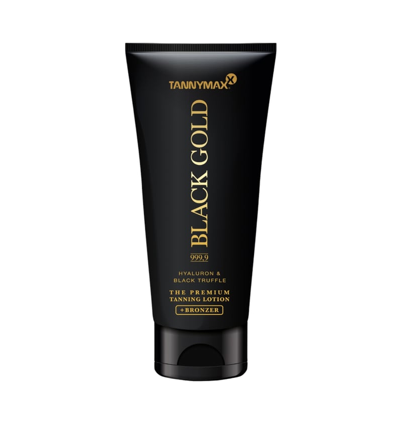 Tannymaxx Black Gold 999,9 Very Dark Tanning + Bronzer este cea mai avansată loțiune de bronzare dezvoltată vreodată de Tannymaxx, combinând acceleratorul de bronzare cu bronzanți naturali pentru un rezultat spectaculos. Formula sa exclusivistă cu trufa neagră, acid hialuronic și ulei de avocado, îmbogățită cu complexul de bronzare finală Tannymaxx, oferă un bronz auriu profund și de lungă durată.