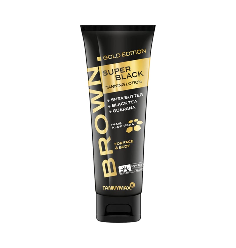 Tannymaxx Brown Super Black Gold Edition este produsul ideal pentru intensificarea bronzului, cu unt de shea, ceai negru și guarana. Această loțiune cu absorbție rapidă oferă pielii cel mai înalt nivel de îngrijire, fiind un accelerator de bronzare care asigură un bronz uniform, fără nuanțe portocalii, în timp ce hrănește intens pielea.