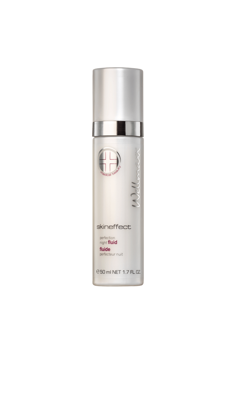 Wellmaxx Skineffect Perfection Night Fluid oferă o îngrijire revitalizantă și restructurantă pentru pielea sensibilă și stresată. Formula sa susține activitatea celulară nocturnă și activarea sistemului natural de apărare a pielii, promovând elasticitatea și vigoarea naturală. Rezultatul este un ten ferm, cu volum îmbunătățit și conturat.